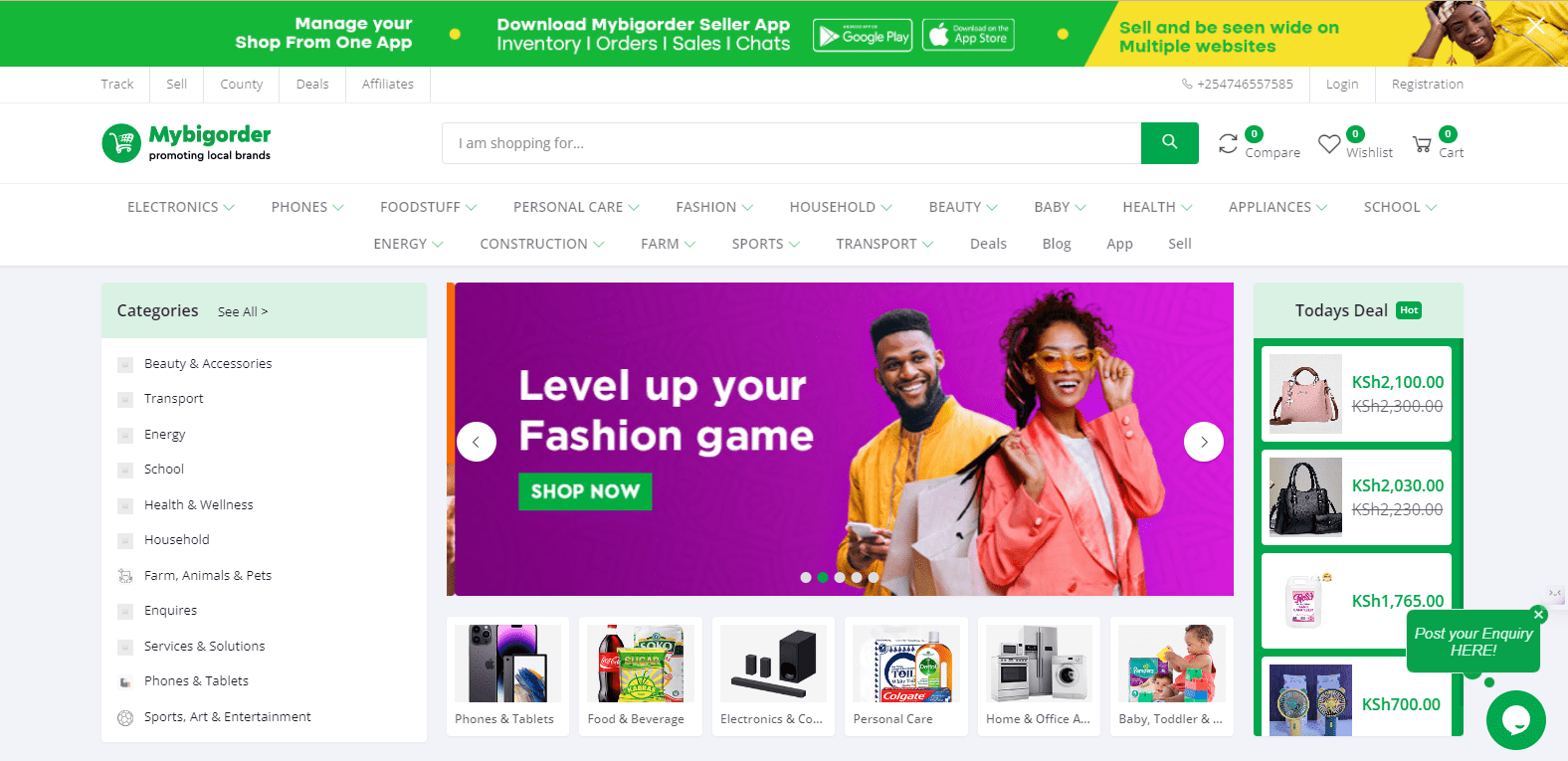 Mybigorder is a digital marketplace developed to support local e-commerce by connecting buyers and sellers in a user-friendly environment. It allows entrepreneurs and vendors to list products, manage orders, and market their stores, while also enabling customers to purchase conveniently from various categories.